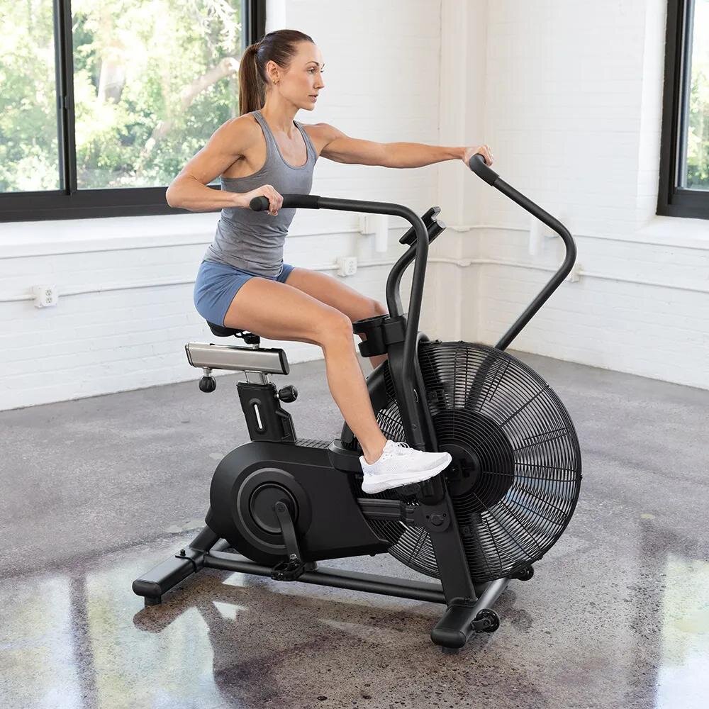 Удобный держатель бутылки для воды позволяет всегда иметь воду под рукой, ветровое стекло блокирует избыточный поток воздуха при интенсивном использовании, а встроенные транспортные колеса позволяют легко перемещать Air Bike по мере необходимости.