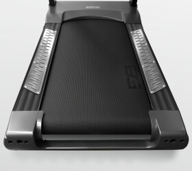 - Дополнительно Антискользяцие алюминиевые площадки для ног справа и слева от бегового полотна, эргономичные поручни с датчиками пульса, увеличенные боковые поручни, покрывающие большую часть беговой поверхности, два больших отсека для бутылки с водой и принадлежностей