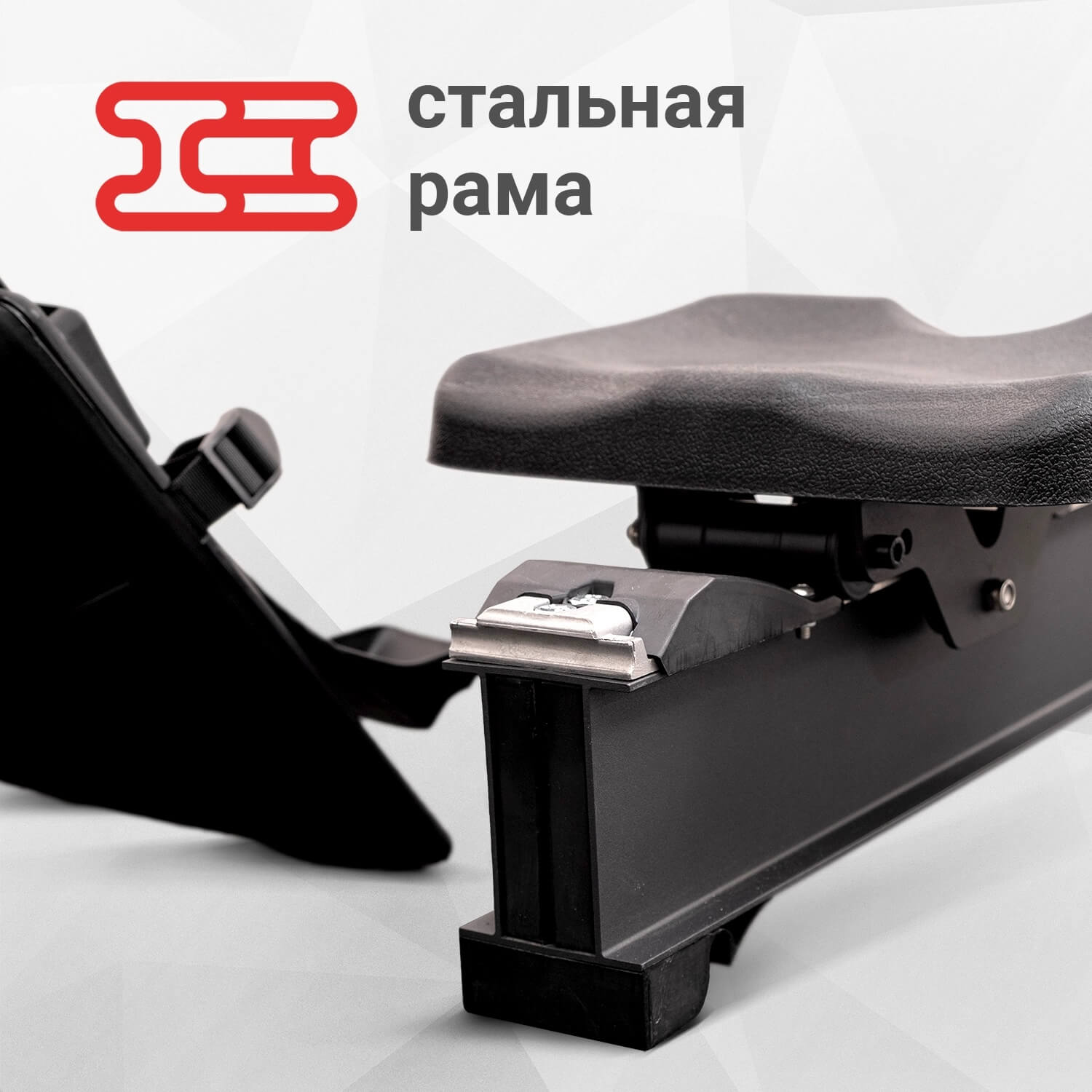 Рама из цельнолитой легированной стали для рассчитана на пользователя до 150 кг. Накладка на поверхность из нержавеющей стали для плавного скольжения.