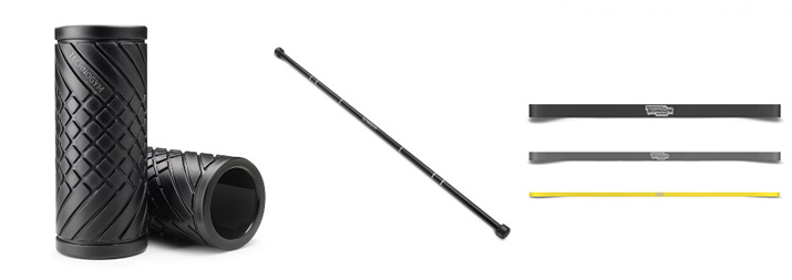 Комплект содержит аксессуары для силовых и функциональных тренировок, кроссфита, пилатеса, йоги, растяжки, массажа и других упражнений, а также места их компактного хранения. Предметы набора созданы в едином стиле, отличаются элегантным внешним видом и качеством материалов. Все аксессуары оснащены QR-кодом, с помощью которого осуществляется цифровая интеграция с MyWellness.