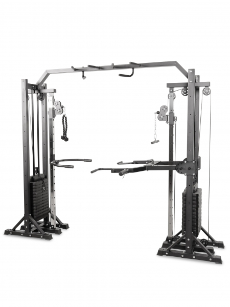 - Кроссовер с регулируемыми рычагами (8 уровней по высоте) — упражнения на грудные, плечи, спину, руки и корпус.