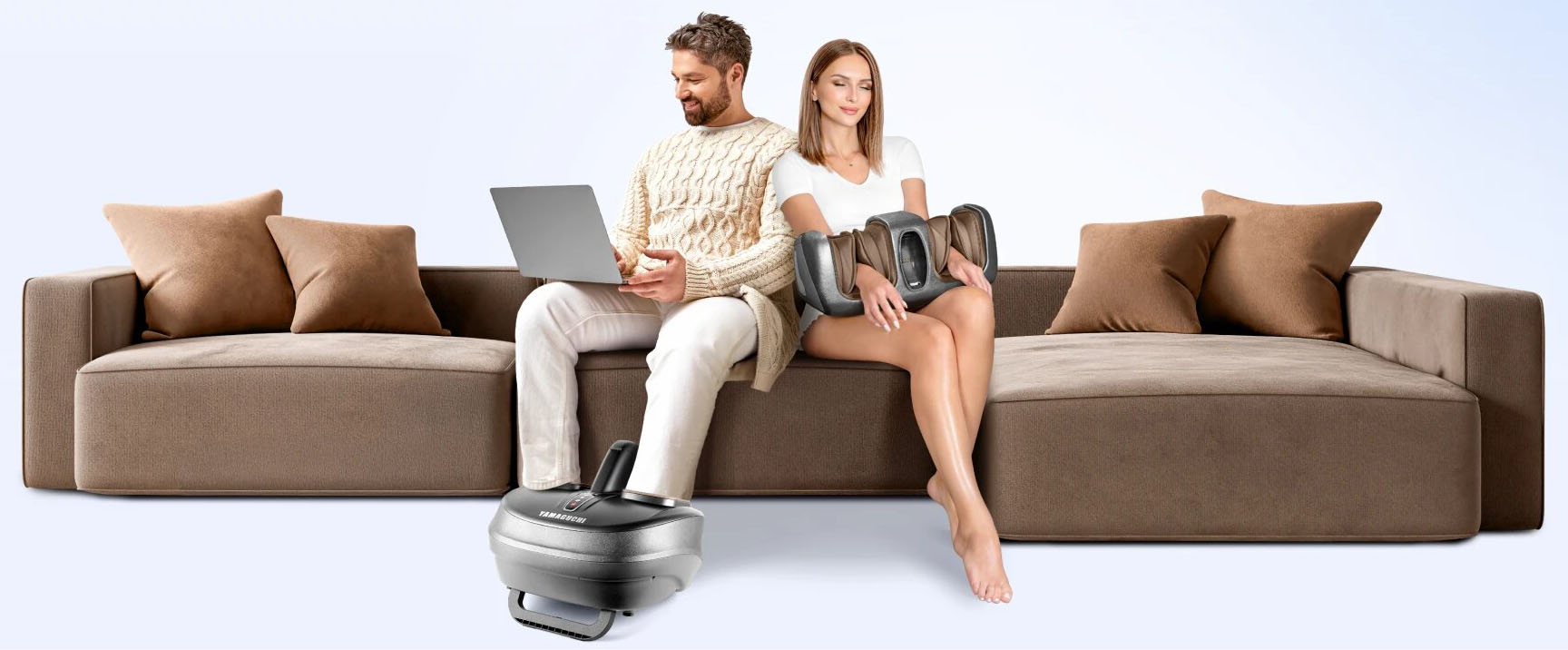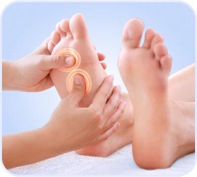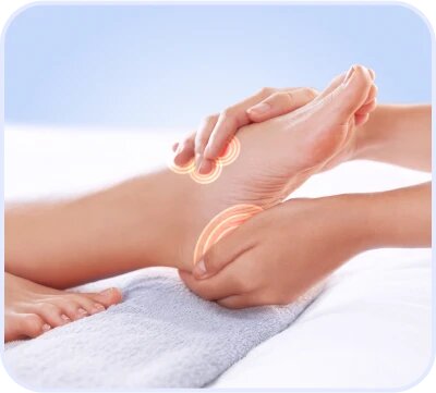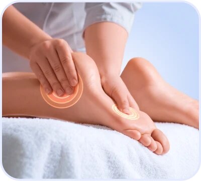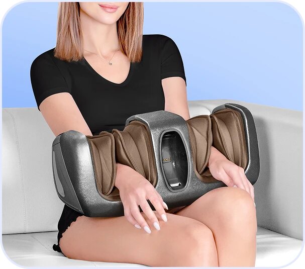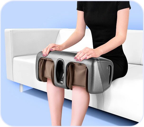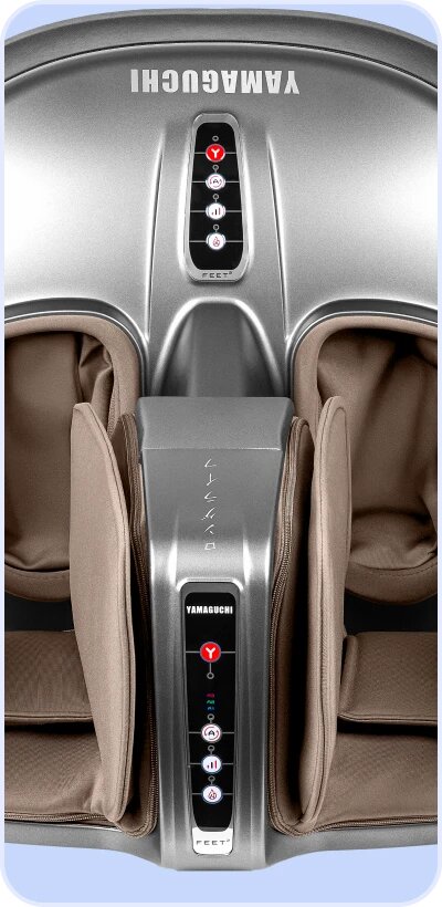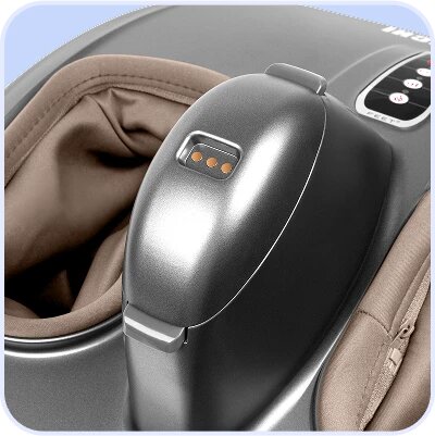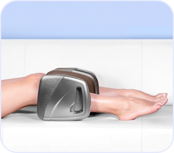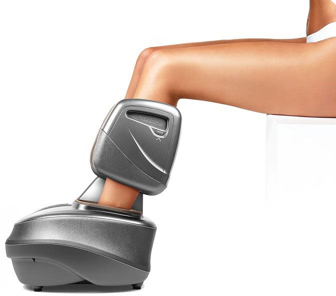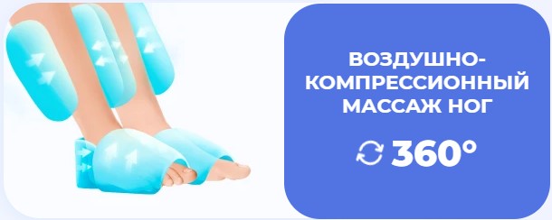Интенсивный роликовый массаж ступней, тщательная проработка икроножной мышцы и зоны плюсны воздушной компрессией.