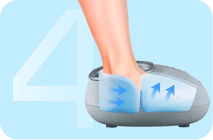 Воздушные манжеты последовательно сдавливают все участки стопы – от пальцев до пятки, обеспечивая равномерную проработку связочного аппарата и глубоких мышечных слоёв.