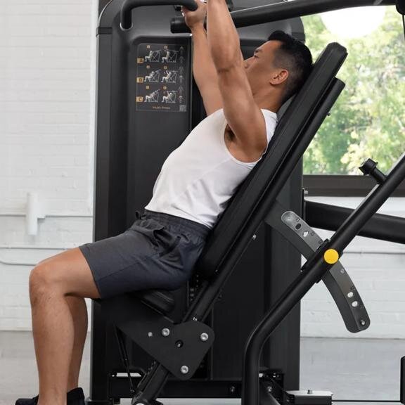 Теперь энтузиасты силовых тренировок могут развивать сбалансированную силу верхней части тела с помощью грузоблочной Multi-press станции, которая подойдет вашему коммерческому фитнес-центру так же хорошо, как и всем, кого вы обслуживаете. От точной геометрии позиционирования тела до влагостойких подушек и сварных стальных рам — продумана каждая деталь для производительности, комфорта и долговечности в сложных условиях фитнес-залов с высокой проходимостью.