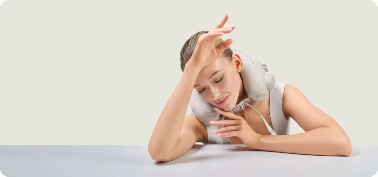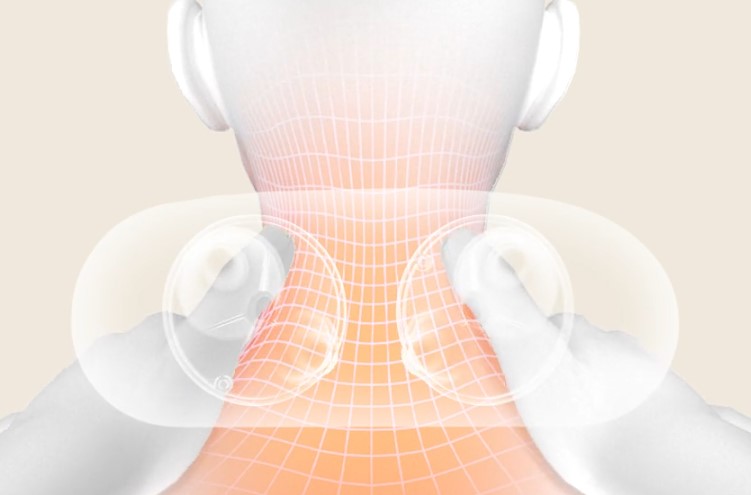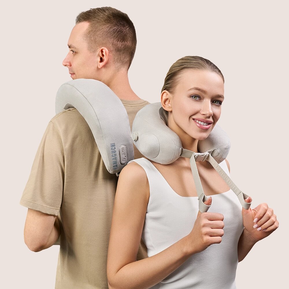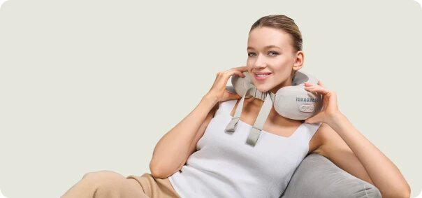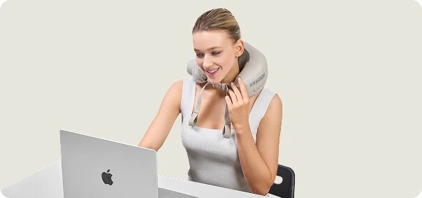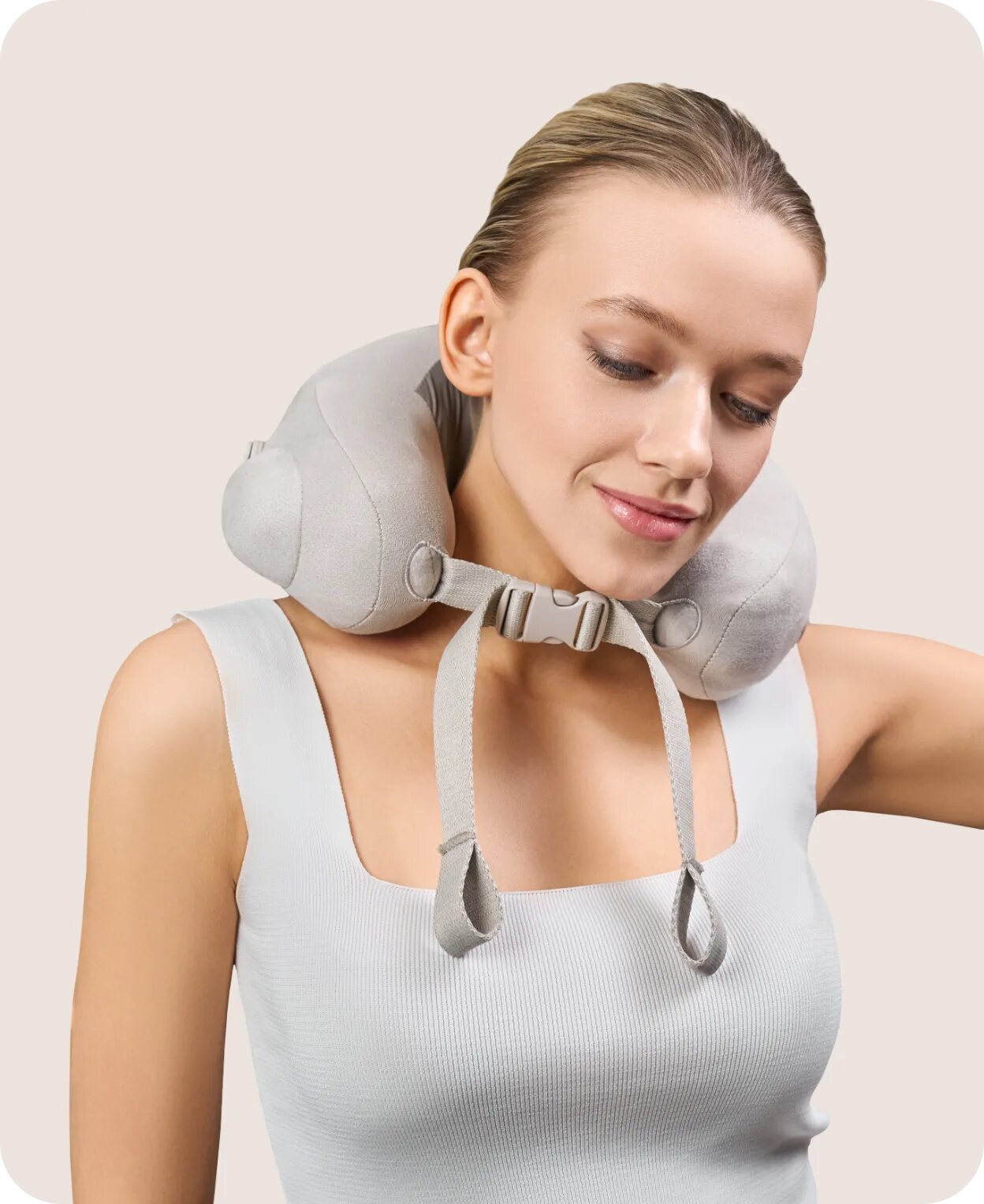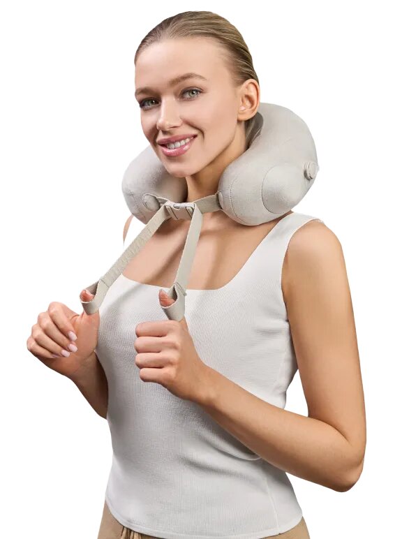 Форма подушки плотно облегает шейно-воротниковую зону, делая массажер одинаково удобным для мужчин и женщин.