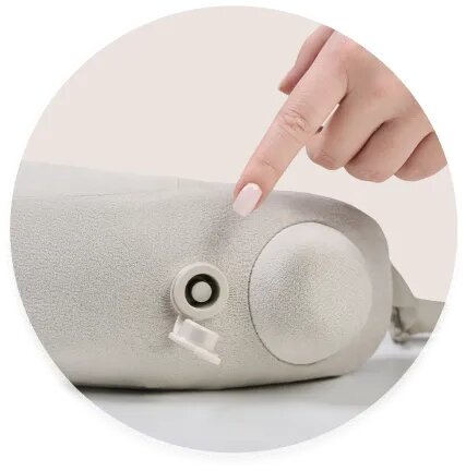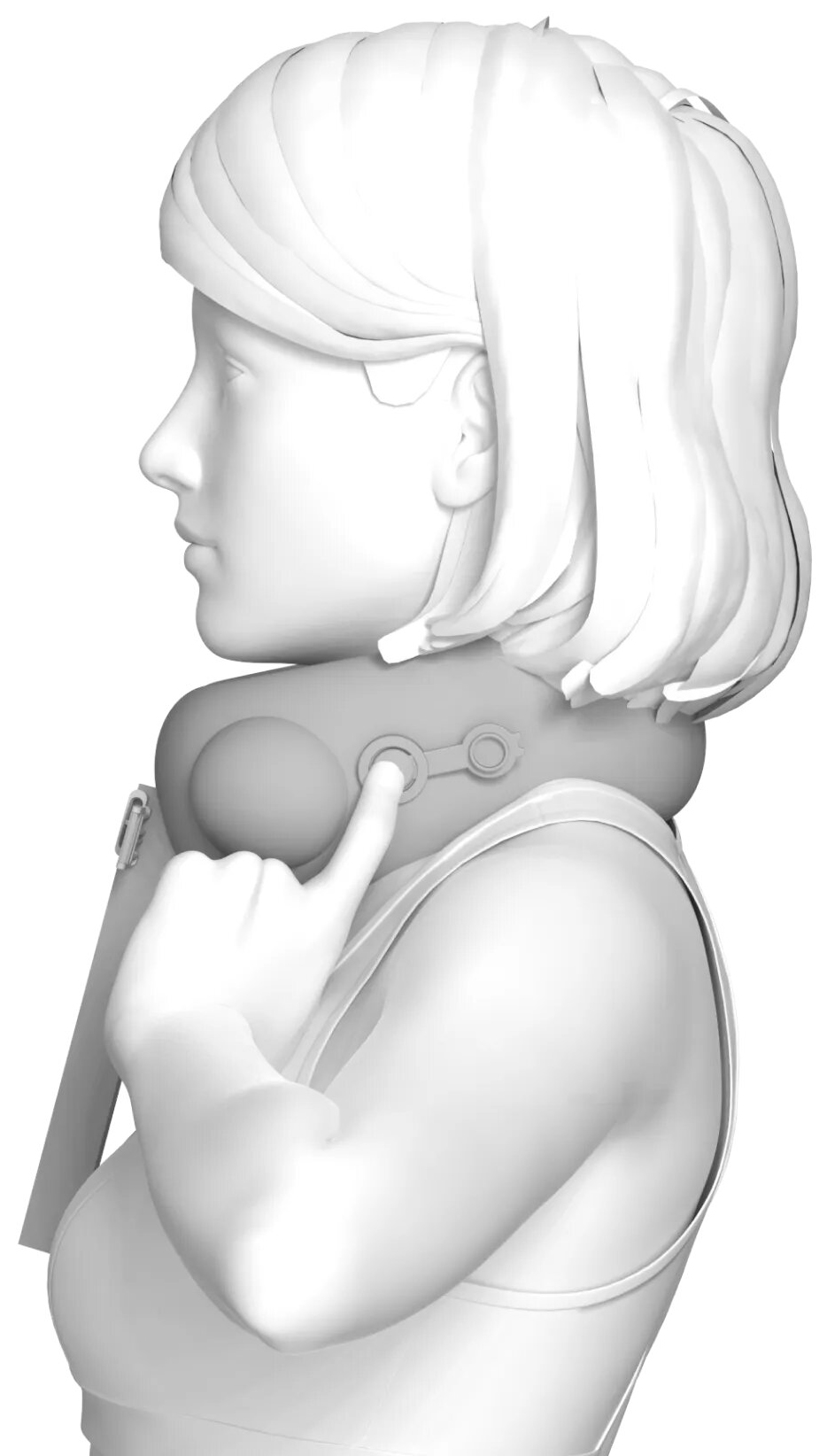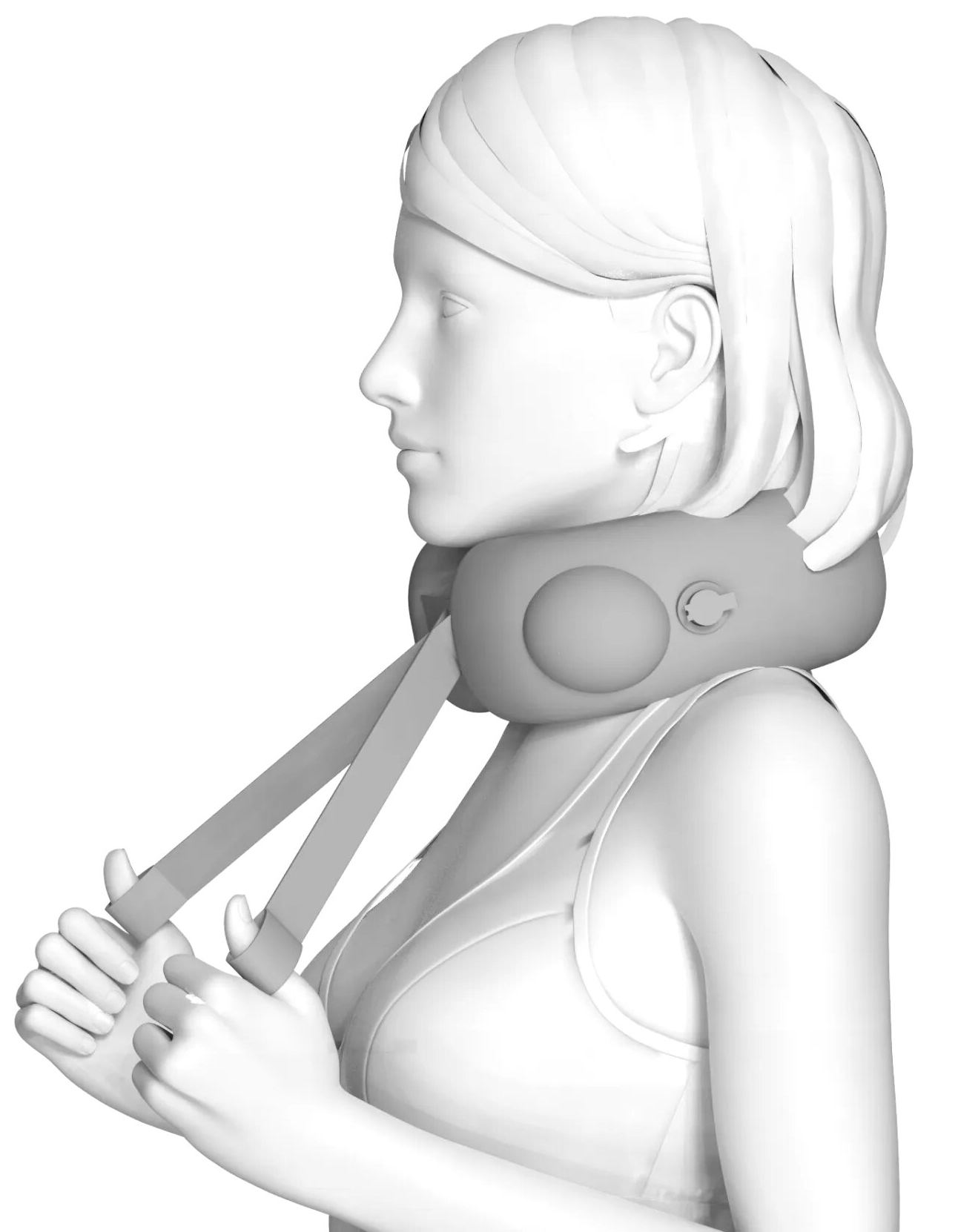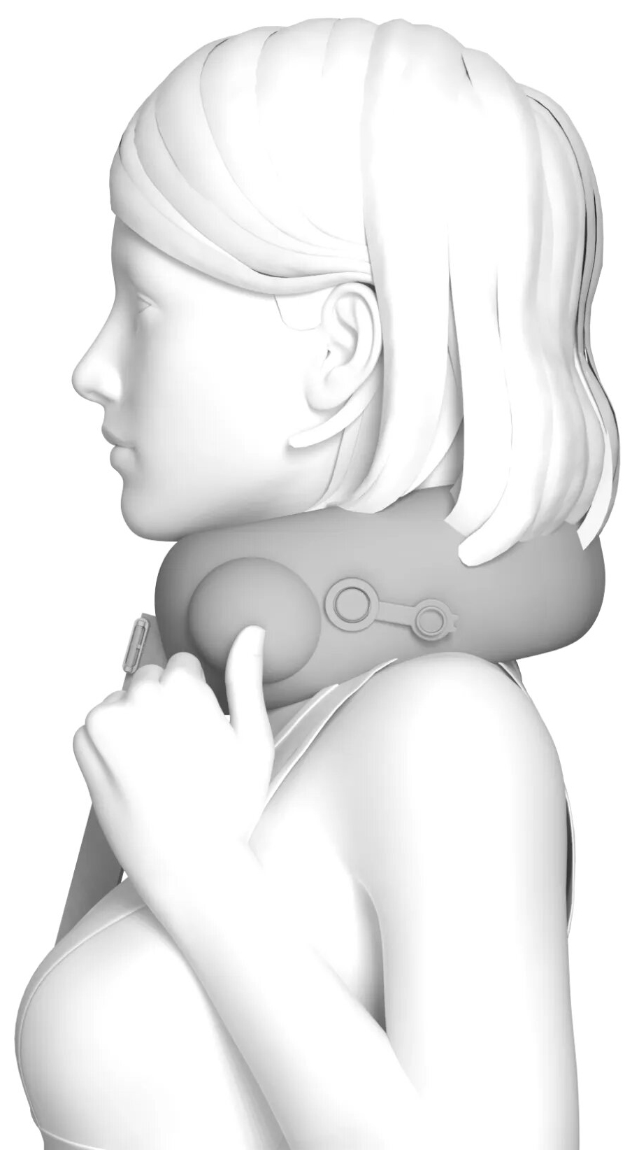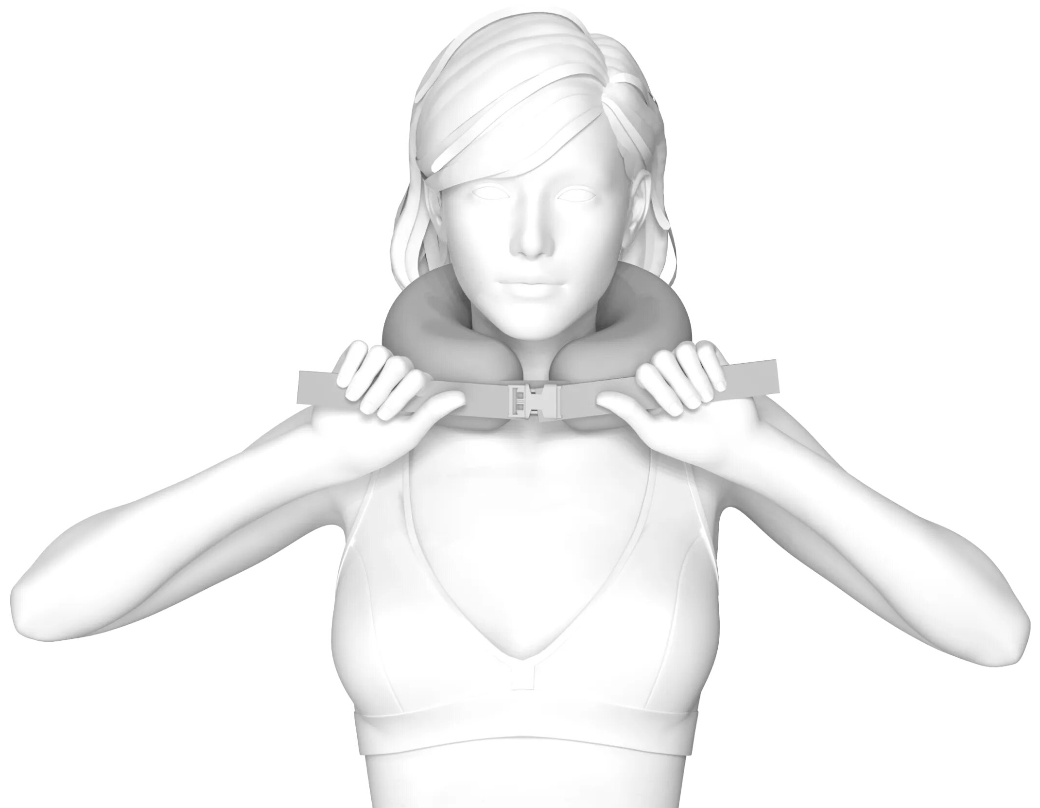 - Выберите удобное положение для массажа, закрепите подушку на шее с помощью застежки.