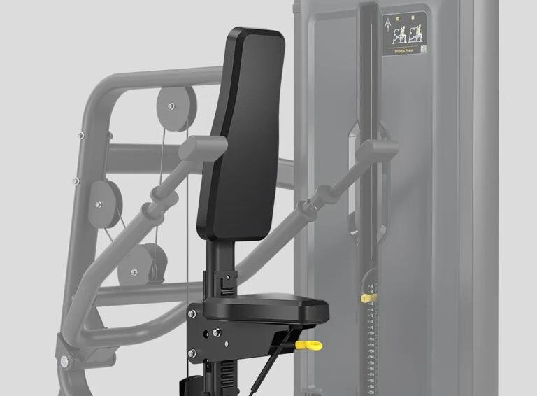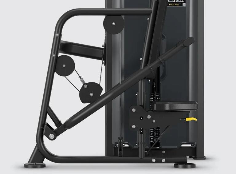 Движение рычага вперед-назад обеспечивает естественную, комфортную траекторию при разгибании в локтевом суставе, в то время как наклонная спинка фиксирует верхнюю часть тела пользователя, более эффективно изолируя трицепсы.