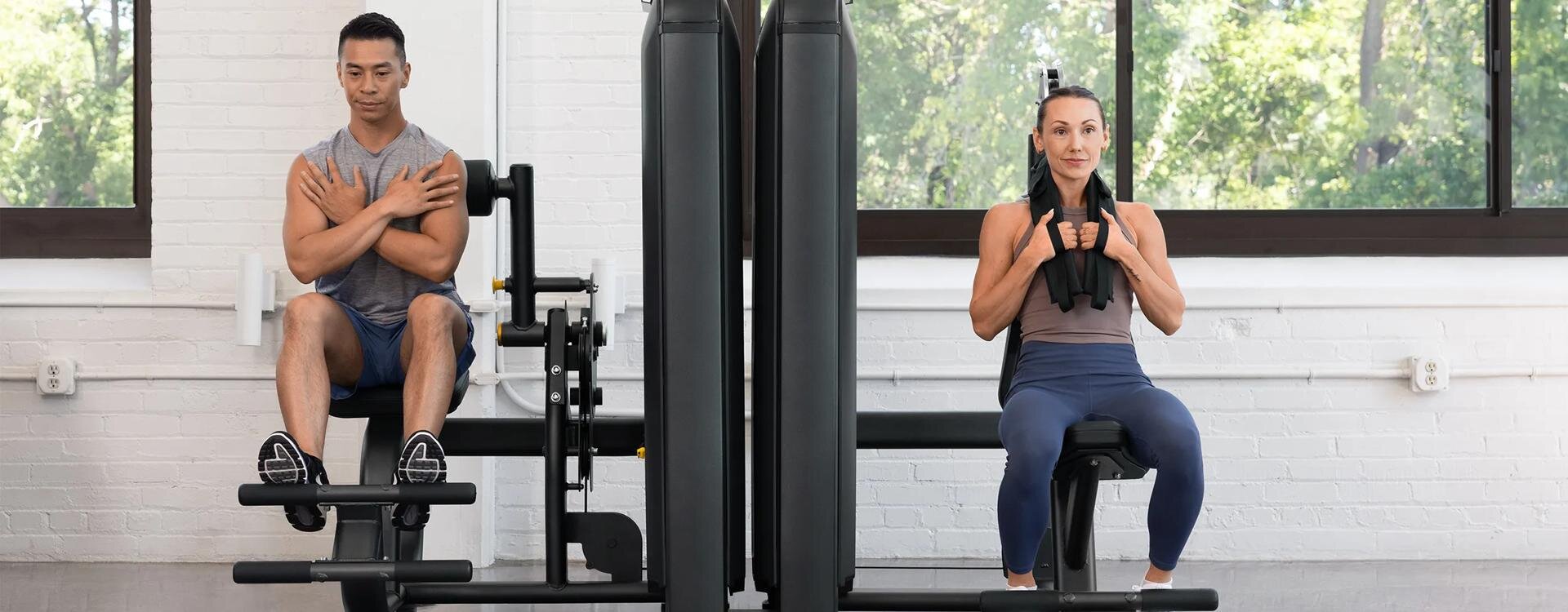 Все наши грузоблочные тренажеры имеют низкую высоту стека для чистых, открытых линий обзора, а также экономящие пространство конфигурации спина к спине, легкодоступные открытые рамы, нескользящую полку для хранения и подставку для устройств.