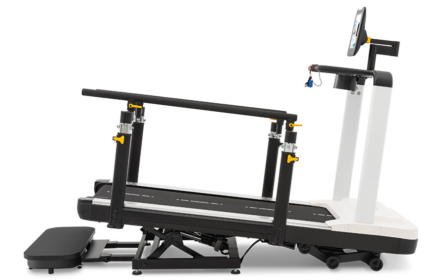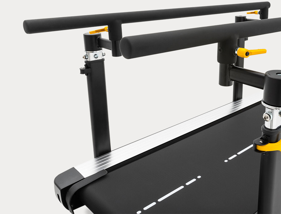 Универсальные программы становятся уникальными благодаря широкому диапазону наcтроек: реверсивное движение (вперед до 22 км/ч, назад до 8 км/ч), регулируемый наклон (подъем до 25%, спуск до -10%), подъемный механизм дорожки с 30 уровнями высоты для точной настройки нагрузки. Уникальная функция Deck Lift позволяет поднимать дорожку на 30 уровней с шагом 6.35 мм, что открывает новые возможности для реабилитации: тренировка шага — имитация подъема по лестнице, упражнения для пациентов с нарушением координации, снижение нагрузки на терапевта — не нужно наклоняться, чтобы корректировать движения пациента. Точная настройка высоты ускоряет восстановление и делает тренировки более эффективными.