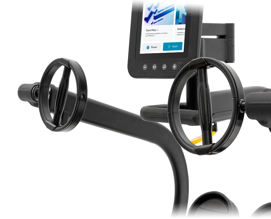 Вращающиеся рукоятки позволяют пациентам с затрудненными движениями в запястьях использовать верхнюю часть тела, исключая дискомфорт и боль. Эта конструкция позволяет принимать несколько положений даже во время одного и того же упражнения. Разница в угле хвата связана с активностью разных мышц руки. Выбор оптимального для пользователя хвата способствует достижению наилучшего результата во время упражнения и реабилитации в целом.