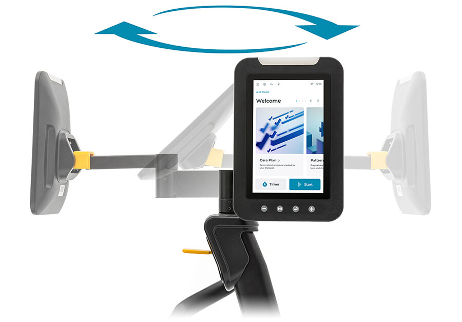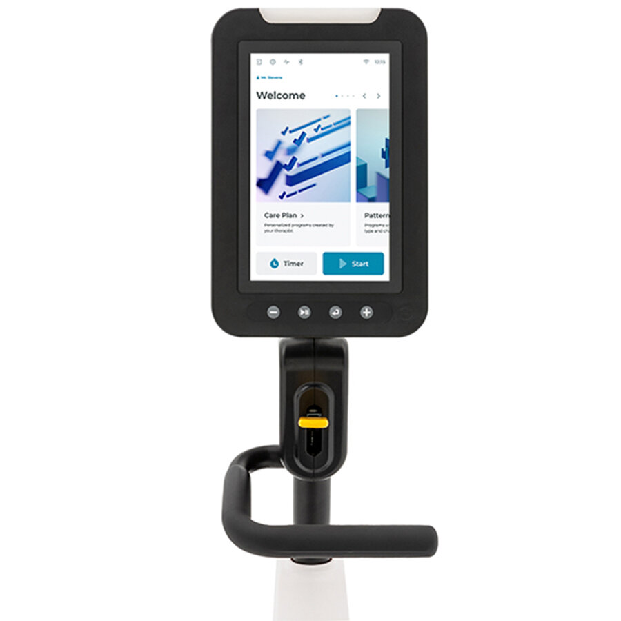 Консоль компьютера с диагональю 10 дюймов поддерживает несколько протоколов подключения и обеспечивает доступ к облачной аналитике, делая 8.5R идеальным инструментом как для терапевтов, так и для пациентов, способствуя улучшению результатов терапии и реабилитации. На верхней части консоли расположены светящиеся элементы, которые меняют свой цвет в зависимости от режима тренировки - этот сигнал указывает тренеру на состояние пользователя в процессе сеанса реабилитации.
