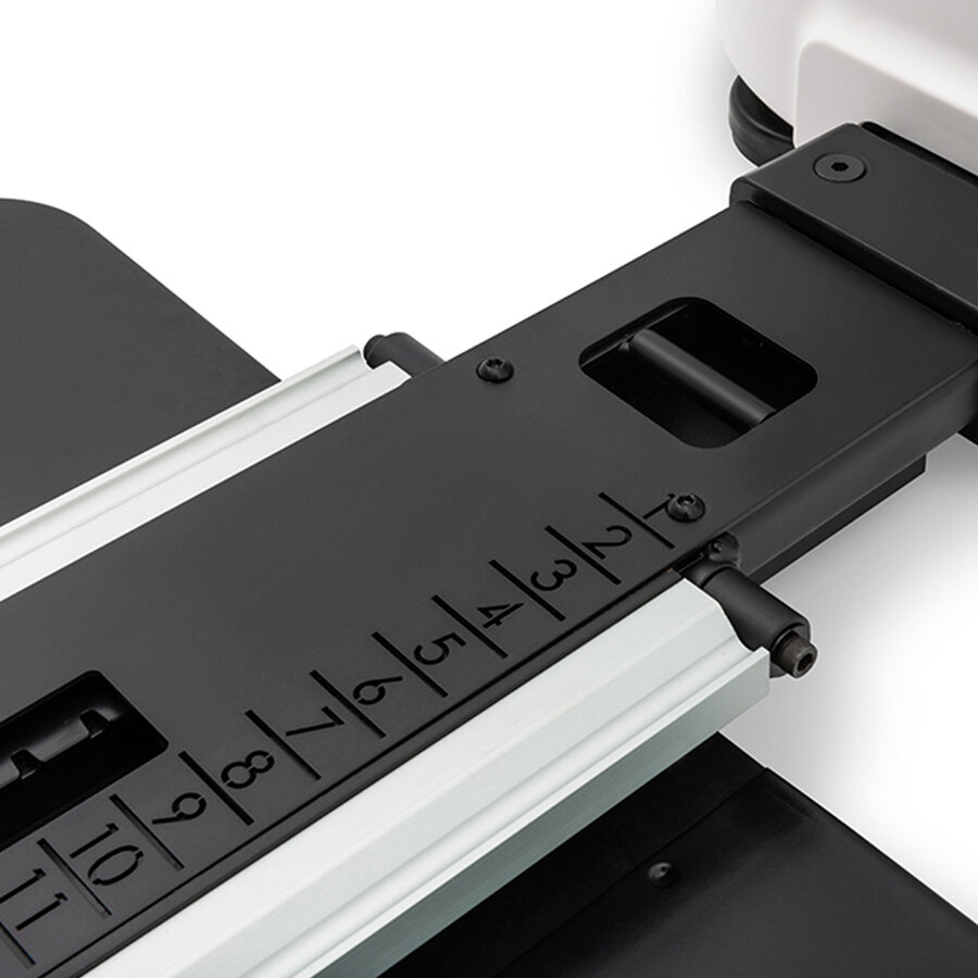 На алюминиевой направляющей трубке сиденья расположена пронумерованная шкала для повторных настроек. Можно легко настроить тренажер под каждого пользователя, если сохранить данные с предыдущего сеанса реабилитации. Положение сиденья обозначается совмещением переднего края каретки сиденья с цифрой на шкале.