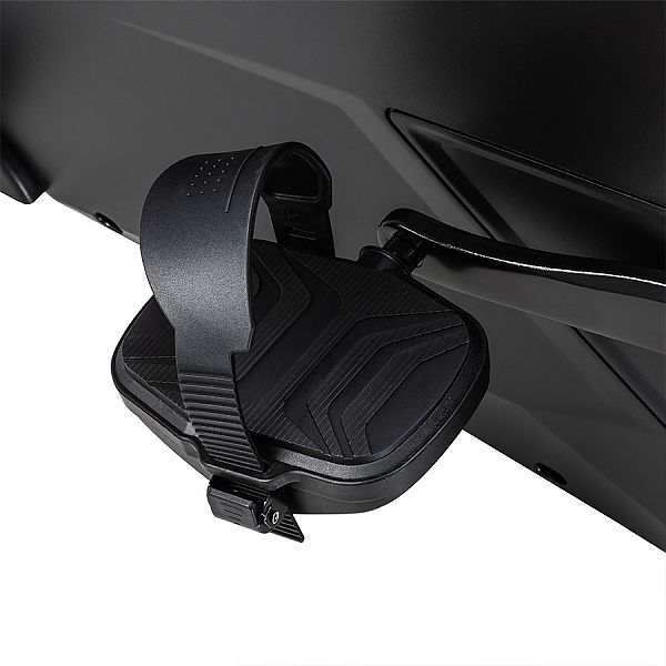 Педали тренажера имеют внутренний угол наклона в 2 градуса, что снижает нагрузку на ноги и способствует максимальному комфорту во время занятий. Прочный восьмижильный поликлиновый ремень и высококачественные подшипники способствуют плавности и мягкости хода.