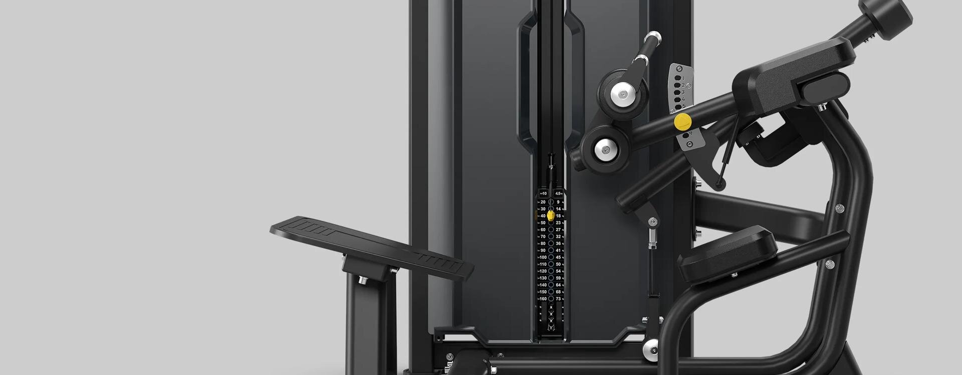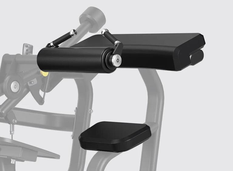 Регулируемое начальное положение обеспечивает комфортную амплитуду движения для пользователей любого роста, большой валик для бедер двигается вместе с телом пользователя для комфорта на протяжении всего подхода, а увеличенная опорная подушка обеспечивает максимальный комфорт и стабильность.